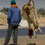 Ajellessani toisena pääsiäispäivänä alas etelään näin eräällä paikkakunnalla teurastettuja lampaita roikkumassa tien vieressä. Osa oli juuri teurastettu – veri valui maahan tai ruhon alle laitettuun astiaan, osa lihasta roikkui puolikkaina paljaaltaan tai muovipusseissa pikku ”ravintolan” edessä telineissään. Lampaan taljoja roikkui vähän joka nurkalla. Kojujen edessä savusi myös grillin näköisiä mustia peltilaatikoita. Miehet viittoilivat innokkaasti pysähtymään. En pysähtynyt.
