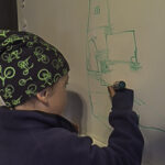 At the board meeting room the kids wrote their greetings.
