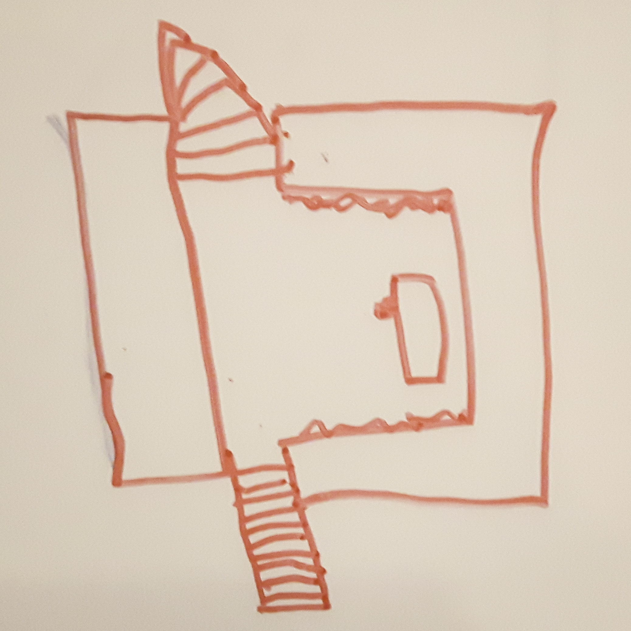 The important elements were found from the drawings: the stone and grass stairs, windows, the central yard, a fountain with statue and the shape of the building – correct! We hadn’t yet visited the council hall when these drawings were made. Its festivity and impressiveness could’ve then also been described in the drawings.