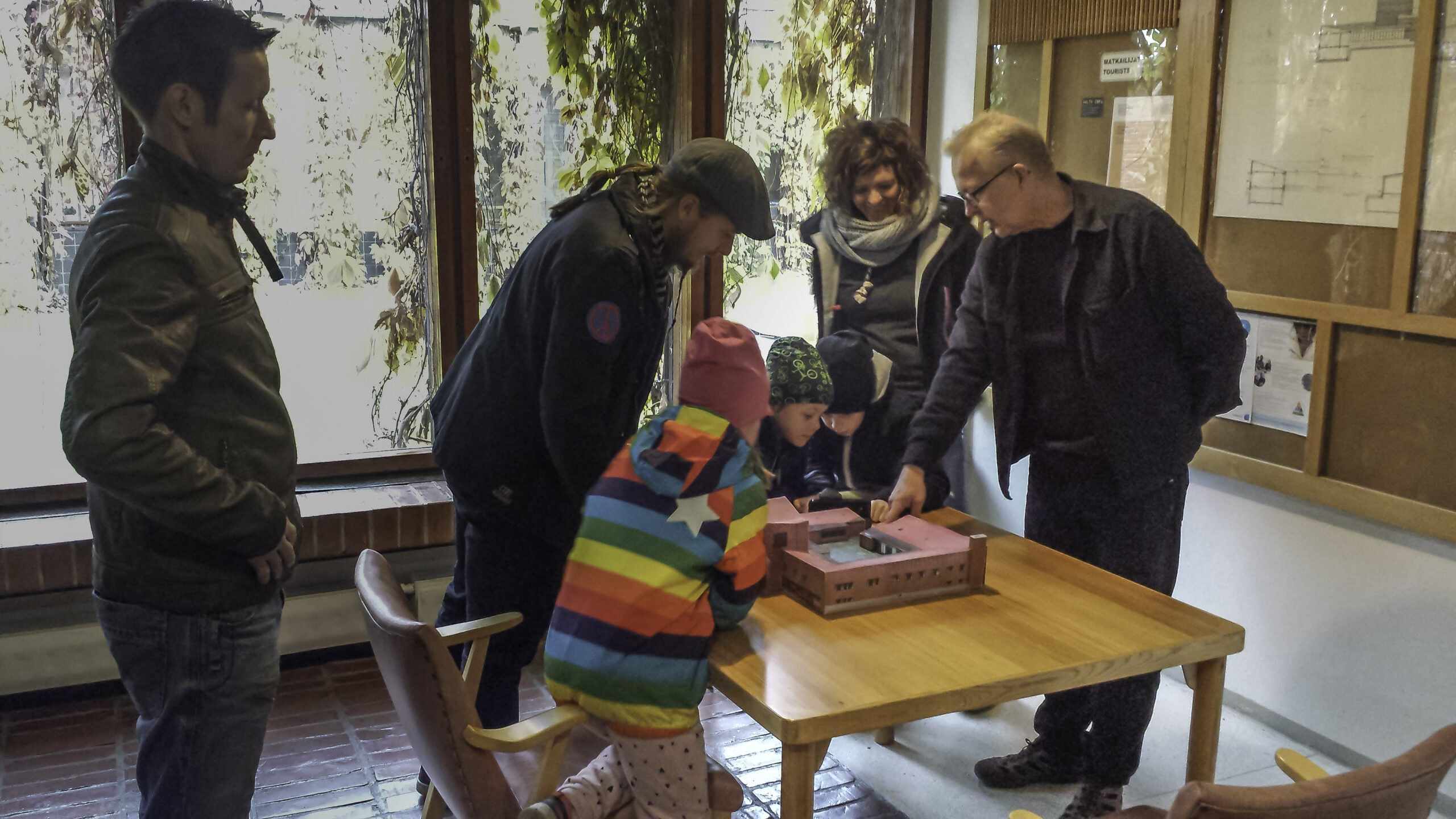 The five-year-old Aamos gave me good help in taking care that the tour went on. If the adults seemed to get stuck at one place, Aamos reminded them: “Should we move to the next room already?” The children (and the adults) were doing great job at taking the museum’s rules in to account. They verified for example: “Can I sit here?” and “Can I go there?”. The kids seemed to be enjoying themselves and there were just enough activities for them. There was kept a few speeches for architecture at the city council’s speaker’s place, and the secretary’s small helpdesk and its secret lockers were investigated thoroughly. When I had first told about Alvar Aalto that he was a “great” Finnish architect, my favourite guidee Aamos began wondering in the extraordinarily high council hall, if the architect was also so tall that he needed such a high room aswell! But I suppose he was just joking with me.