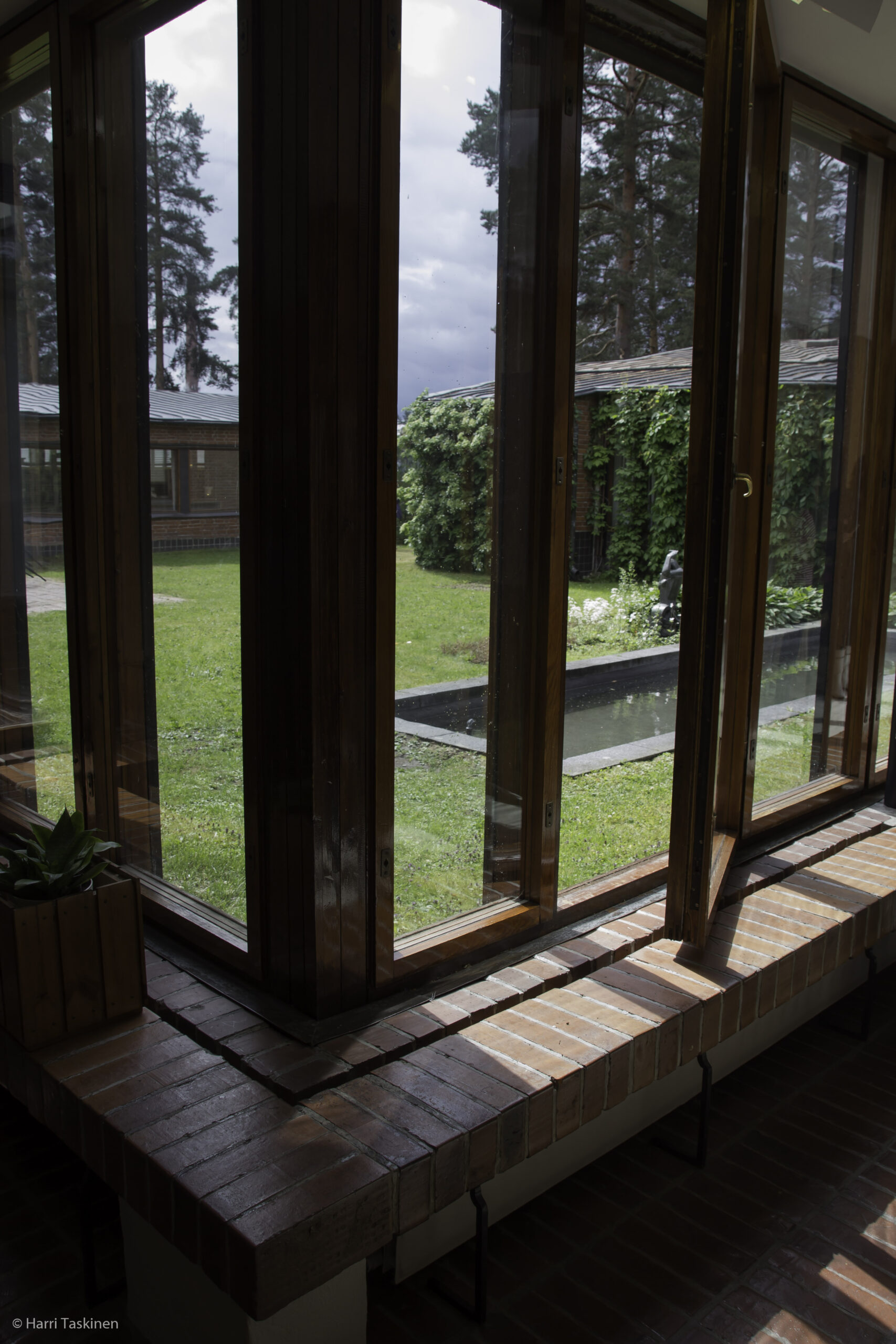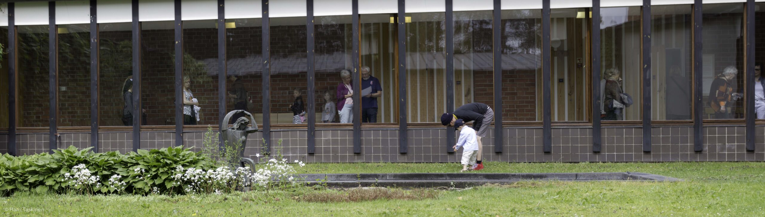Kävin naapuritalossa kun sielä oli kesäkahvilan avajaiset. Väki oli jo löytänyt tiensä käytäville, kahvilaan, kunnanhallituksen kokoushuoneeseen ja valtuustosaliinkin. Ulkona oli aika hiljaista, koska ukkoskuuro juuri kasteli koko tienoon. Kuuntelin virallisen opastuksen ja 92-vuotiaan arkitehdin muisteloita Alvar Aallon apulaisena talon piirtämisestä ja rakentamisesta. Alakerran liikehuoneistoonoli avattu pop-up-shop.
